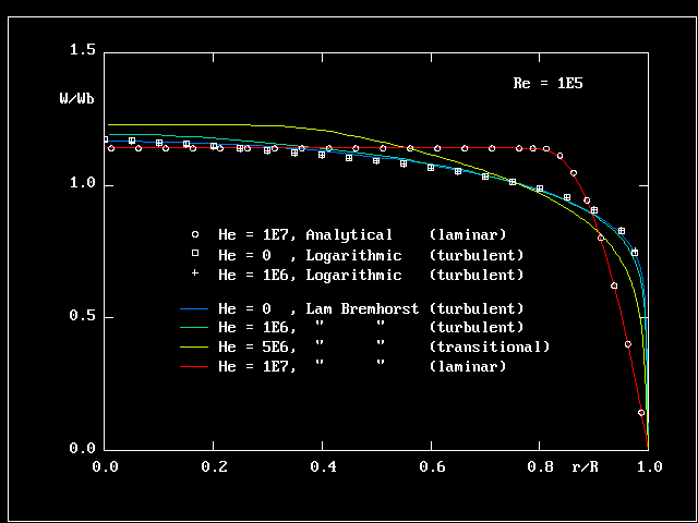 5. MEAN VELOCITY PROFILES AT VARIOUS HEDSTROM NUMBERS FOR RE=1E5