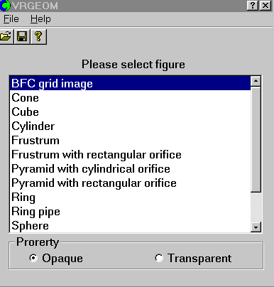 VRGEOM handles a number of basic object classes from which the variety of different shapes can be created via user-specified object parameters.
