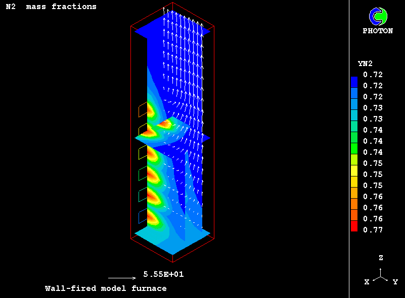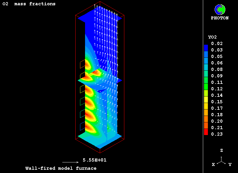 The furnace is symmetrical, and only half of it is simulated and represented.